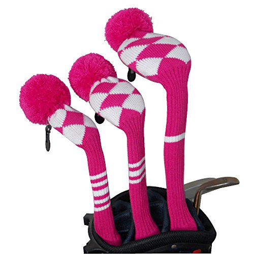 Rose White Argyle Style, Ladies Golf Head Covers Set of 3 for Wood Clubs with Number Tags 1#3#5#, Double Layers Knitted, Cute Pom Pom Reviews